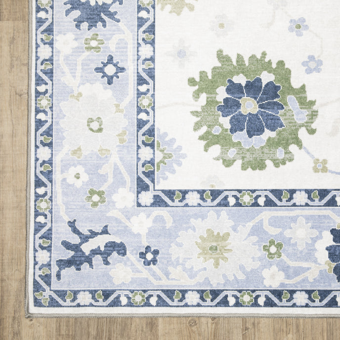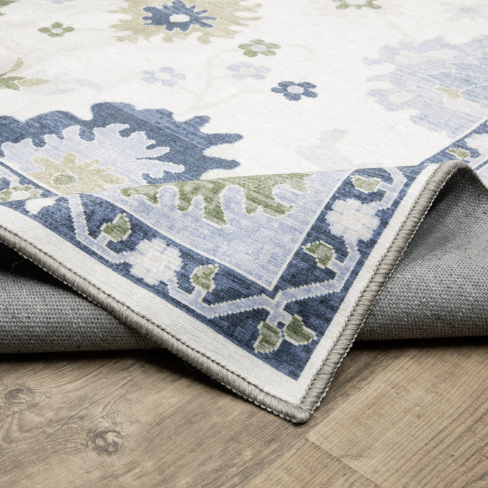 Cleaning/Installation: If spills occur, blot as much of the stain as possible with a clean cloth. Do not use heavy duty vacuum with a beater bar/brush. In 2.2 cu ft washer*, machine wash separately in cold water using mild, non-bleach detergent, and design facing out. Dry on low heat or hang to dry. Do not use fabric softener. * For 5’x7’ and smaller use a 2.2 cu ft washer. For 7’6”x10’ and larger use a 3.8 cu ft washer. Initial creasing is normal, and these will generally fall out within a few days to a week; tightly reversing rolling the rug (pile side out) and leaving in warm area for several hours will aid in the removal of creases or lingering fold marks.