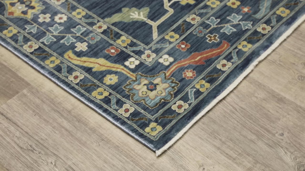 The Francesca collection features softened jewel tones of sapphire and turquoise, muted gold, and cinnabar alongside nature-inspired neutrals and an earthy brown and green. It is power-loomed of space dyed, super soft polypropylene. Francesca showcases updated traditional patterns highlighting open fields, updated borders, and some folk-art flair.