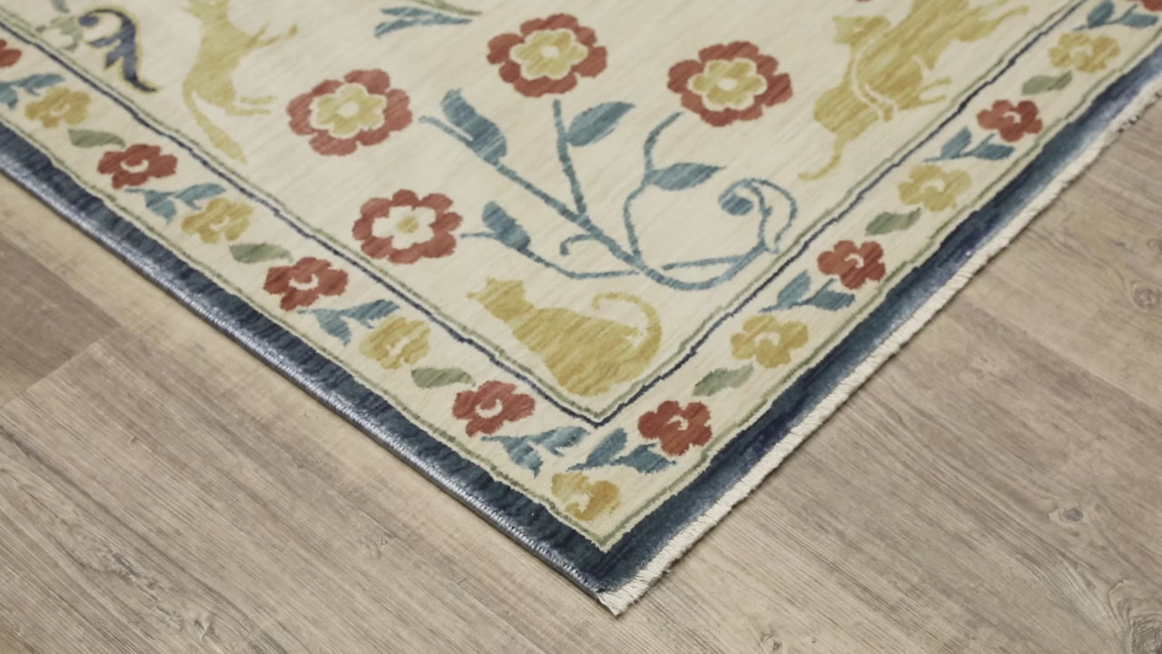 The Francesca collection features softened jewel tones of sapphire and turquoise, muted gold, and cinnabar alongside nature-inspired neutrals and an earthy brown and green. It is power-loomed of space dyed, super soft polypropylene. Francesca showcases updated traditional patterns highlighting open fields, updated borders, and some folk-art flair.