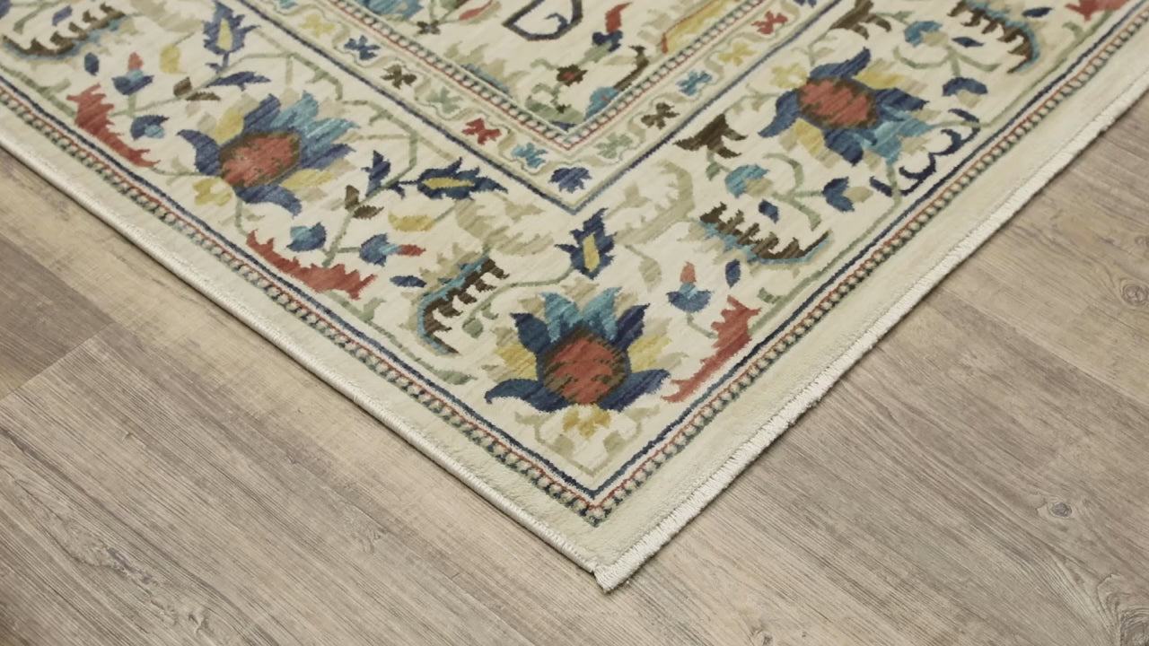 The Francesca collection features softened jewel tones of sapphire and turquoise, muted gold, and cinnabar alongside nature-inspired neutrals and an earthy brown and green. It is power-loomed of space dyed, super soft polypropylene. Francesca showcases updated traditional patterns highlighting open fields, updated borders, and some folk-art flair.