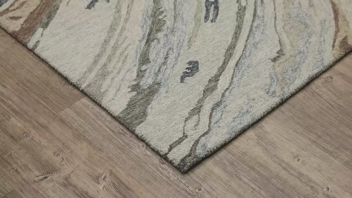 Kipton is a hand-tufted collection constructed of space dyed wool and features a dense, textural cut and loop pile. Designs recall the organic shifting and layering of natural elements over time and that idea is echoed in the softly saturated blue and green tones as well as warmer shades of copper and gold.