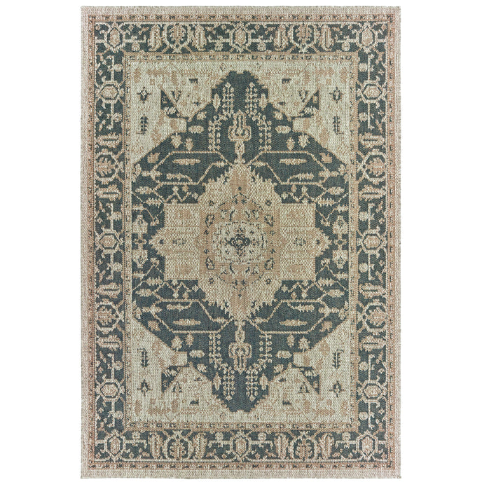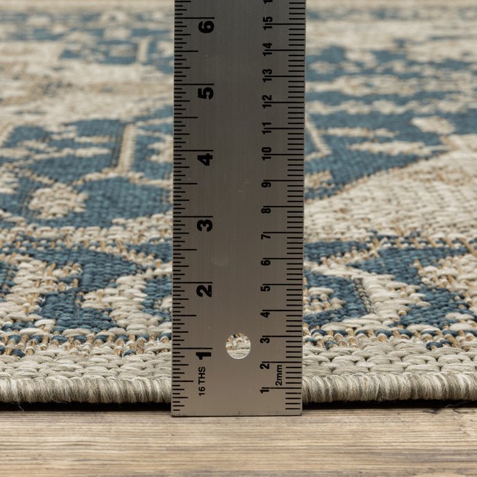 The Latitude collection showcases sophisticated designs ranging from traditional tile and medallion patterns to simple modern borders and geometrics. Multi-colored yarns in neutral grays, accented by tones of deep navy and vibrant persimmon, add texture and a pop of color underfoot. Machine-woven of polypropylene, Latitude is easy to care for and can be used both indoors and out.