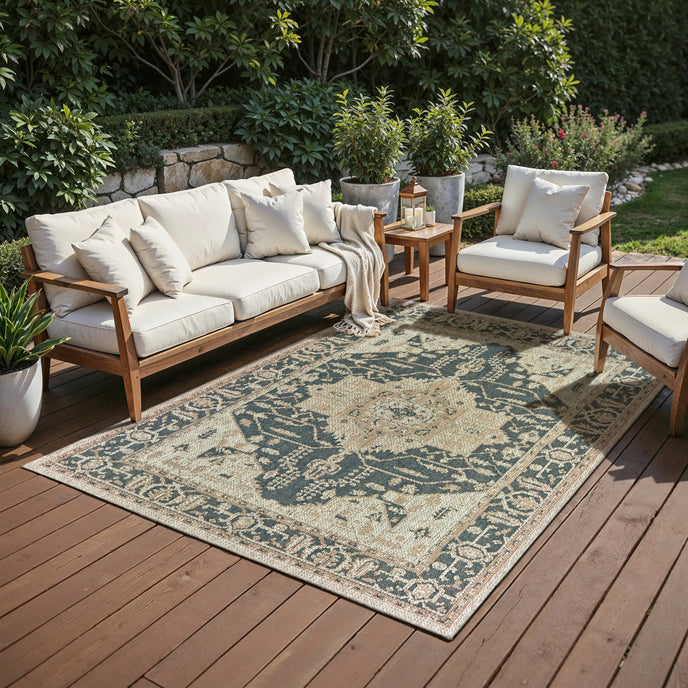 Cleaning/Installation: If spills occur, blot as much of the stain as possible with clean cloth or paper towel. Apply mild soap and water to a clean sponge to remove the remainder of the spill. Allow area to dry. To clean the entire surface of the indoor/outdoor rug, spray with a mixture of mild soap and water and rinse with garden hose. The use of a rug pad is recommended; initial creasing is normal, and these will generally fall out within a few days to a week; tightly reversing rolling the rug (pile side out) and leaving in warm area for several hours will aid in the removal of creases or lingering fold marks.
