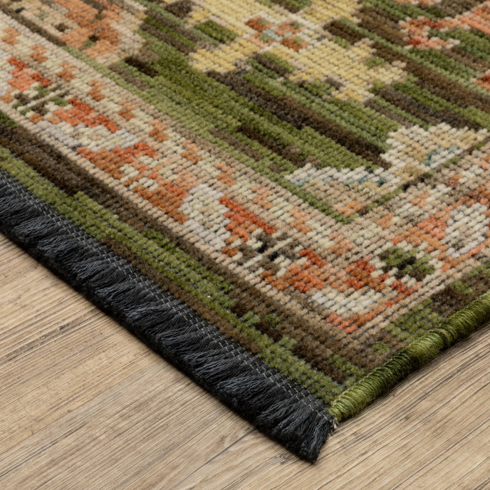 The Legacy collection showcases the artistry of space-dyed wool and nylon in a beautifully crafted area rug. Woven on an Axminster loom, the pieces offer exceptional quality and durability while maintaining the look of a hand-knotted rug through the use of zero pile as well as incorporated fringe. The saturated and textured jewel tones of sapphire, emerald and amethyst, as well as rich shades of crimson, gold and brown are wonderfully striking in contrast to the deep midnight shade of the exposed weft yarn and fringe. Featuring global styling with a bohemian twist, the Legacy collection brings both timeless sophistication as well as a sense of joy and fun to an endless array of interior styles.