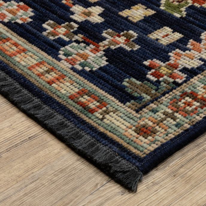The Legacy collection showcases the artistry of space-dyed wool and nylon in a beautifully crafted area rug. Woven on an Axminster loom, the pieces offer exceptional quality and durability while maintaining the look of a hand-knotted rug through the use of zero pile as well as incorporated fringe. The saturated and textured jewel tones of sapphire, emerald and amethyst, as well as rich shades of crimson, gold and brown are wonderfully striking in contrast to the deep midnight shade of the exposed weft yarn and fringe. Featuring global styling with a bohemian twist, the Legacy collection brings both timeless sophistication as well as a sense of joy and fun to an endless array of interior styles.
