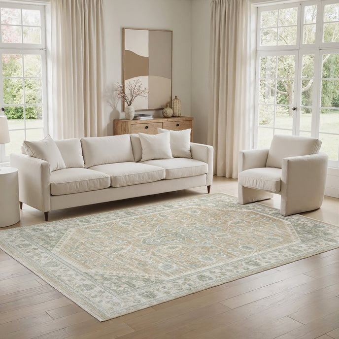 The Lola Collection offers timeless elegance with its traditional Oushak-inspired looks, in elemental neutral shades - warm, tinted neutrals of soft clay and vintage gold as well as subtle mineral-based blues grounded by warm brown, oatmeal and eggshell. Machine-woven of 100% polyester, these rugs feature a hi-lo texture and space-dyed yarn for a richly detailed, hand-knotted appearance. Subtle incorporated fringe grounds each piece, making it a versatile and stylish foundation for any room.
