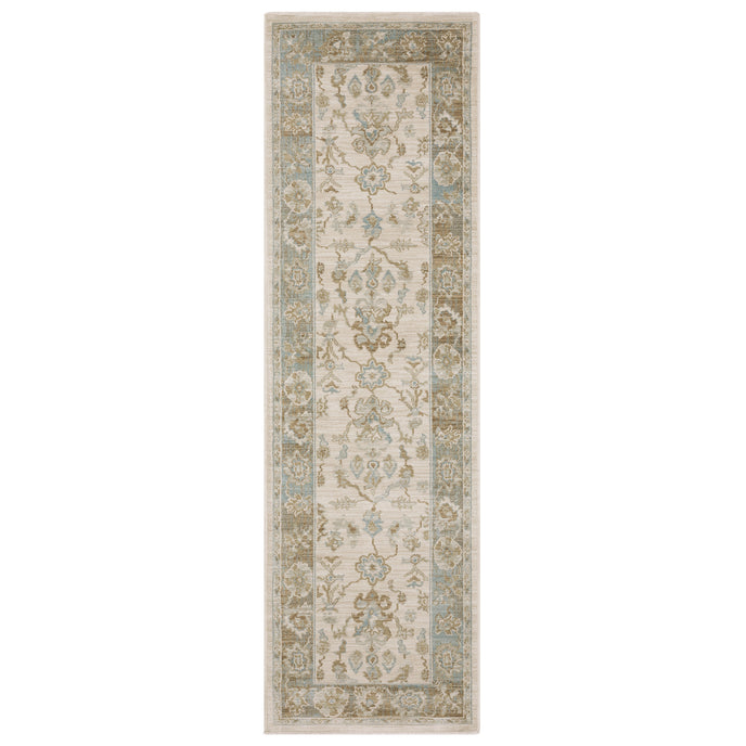 The Maeve collection features subtly pigmented color palette features neutral tones of ash brown, oat milk and sustained gray as well as mineral-based blues, matcha green, sunbaked clay and antique gold. The quietly modern color palette gives fresh appeal to traditional Persian and block print patterns with a touch of bohemian flair. It is power-loomed of super-soft, space-dyed polypropylene.