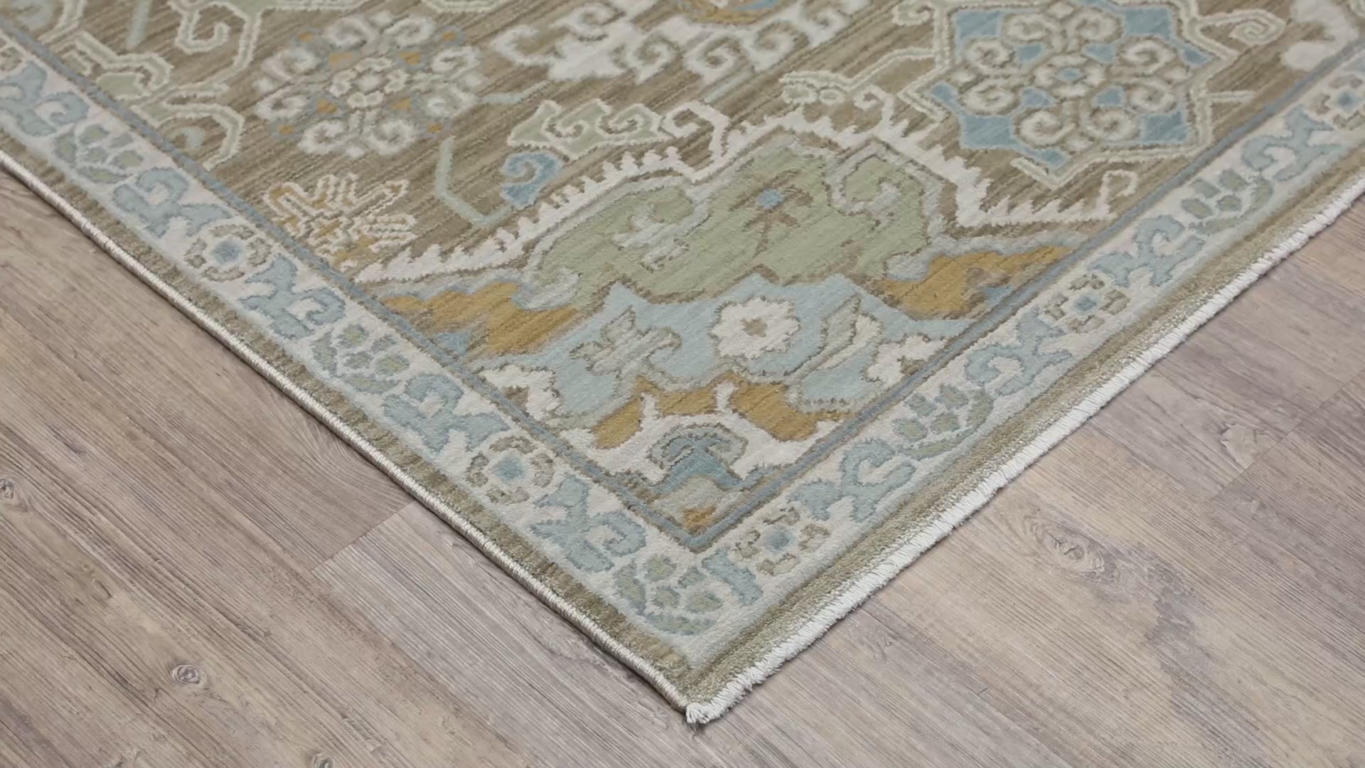 The Maeve collection features subtly pigmented color palette features neutral tones of ash brown, oat milk and sustained gray as well as mineral-based blues, matcha green, sunbaked clay and antique gold. The quietly modern color palette gives fresh appeal to traditional Persian and block print patterns with a touch of bohemian flair. It is power-loomed of super-soft, space-dyed polypropylene.