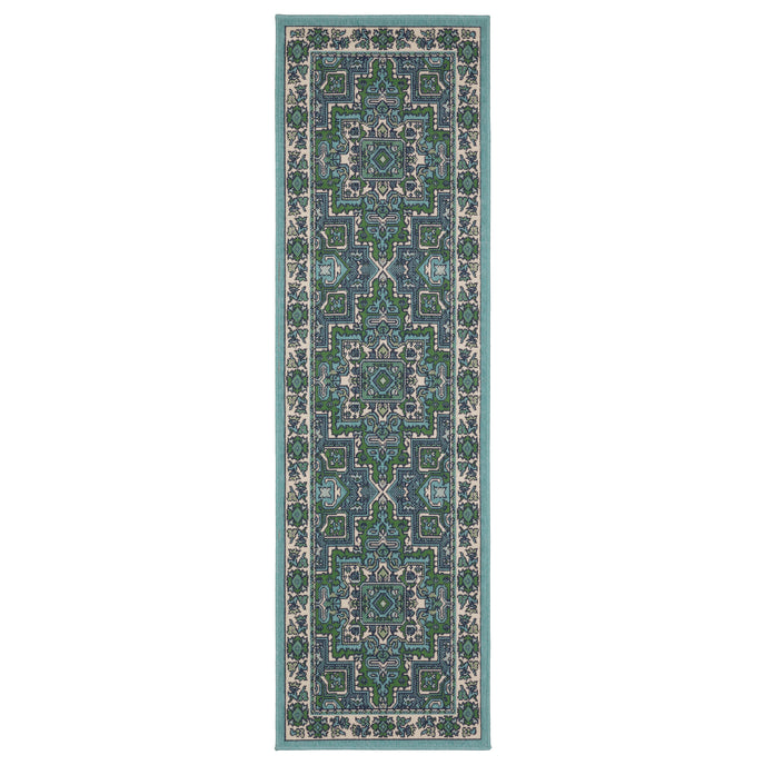 Breathe new life into any indoor or outdoor space with the vibrantly beautiful hues of Meridian. The collection features unique, tricolor yarn for added color versatility on popular shades of indigo blue, Aruba blue, Kelly green and tomato red. Boasting on-trend geometric patterns as well as classic stripes and border designs, a Meridian rug will give any area an instant wow-factor.