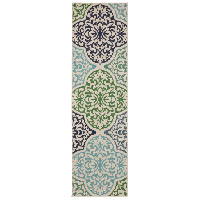 Breathe new life into any indoor or outdoor space with the vibrantly beautiful hues of Meridian. The collection features unique, tricolor yarn for added color versatility on popular shades of indigo blue, Aruba blue, Kelly green and tomato red. Boasting on-trend geometric patterns as well as classic stripes and border designs, a Meridian rug will give any area an instant wow-factor.