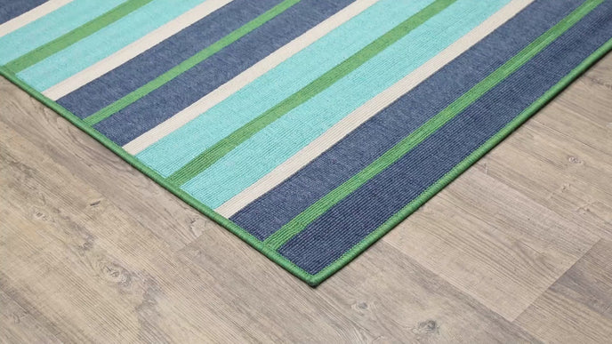 Breathe new life into any indoor or outdoor space with the vibrantly beautiful hues of Meridian. The collection features unique, tricolor yarn for added color versatility on popular shades of indigo blue, Aruba blue, Kelly green and tomato red. Boasting on-trend geometric patterns as well as classic stripes and border designs, a Meridian rug will give any area an instant wow-factor.