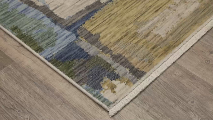 The Soleri collection features modern abstract designs beautifully colored in vibrant shades of pink, blue, green and gold. The space-dyed wool and nylon blend is cross-woven on an Axminster loom and features incorporated cotton fringe. Made in Egypt.