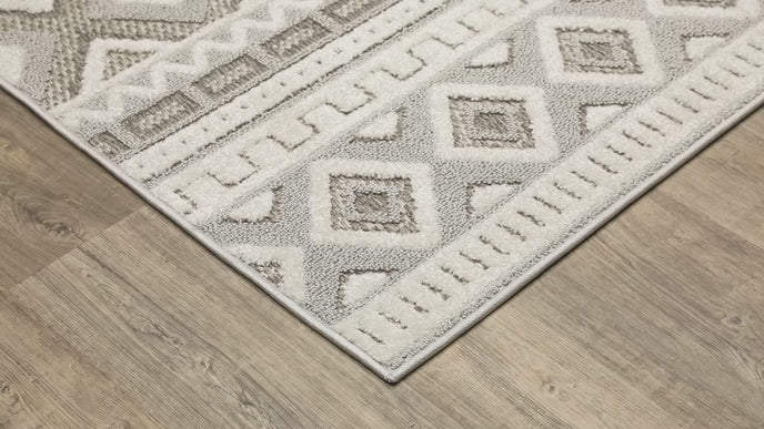 The Tangier collection showcases global patterns in on-trend neutral tones ranging from ivory to warm sand and cool gray. Power-loomed of 100% polypropylene with textured and multi-tonal lustrous yarn, Tangier offers a sophisticated look and feel. Tangier?s multi-level construction features plush cut pile, textured loop and flatwoven areas that create a visually intriguing and tactile appeal to any decor.