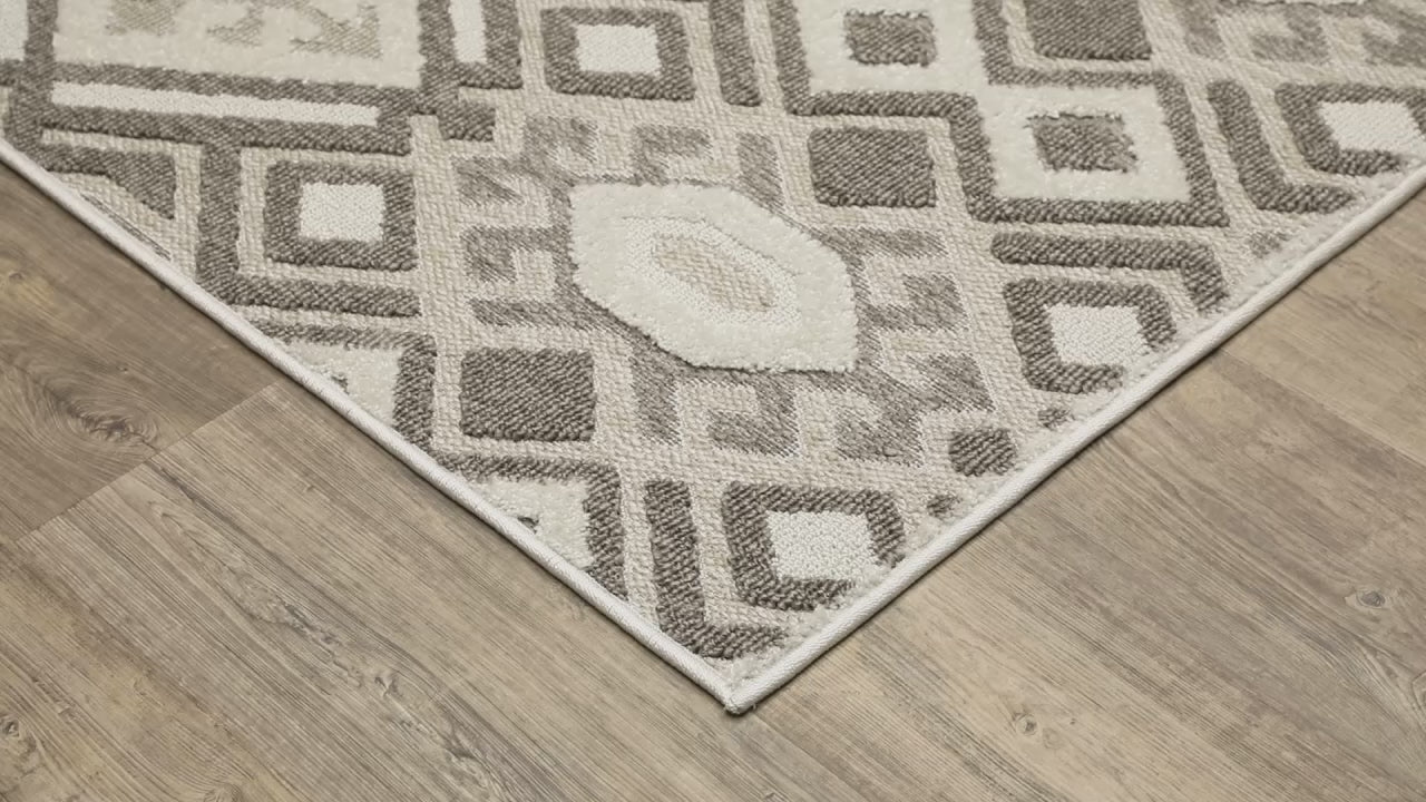 The Tangier collection showcases global patterns in on-trend neutral tones ranging from ivory to warm sand and cool gray. Power-loomed of 100% polypropylene with textured and multi-tonal lustrous yarn, Tangier offers a sophisticated look and feel. Tangier?s multi-level construction features plush cut pile, textured loop and flatwoven areas that create a visually intriguing and tactile appeal to any decor.