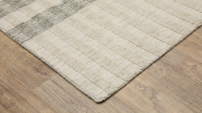 The Thatcher Collection showcases modern geometric designs brought to life through a hand-loomed cut and loop pile construction, for added surface interest and tactile appeal. Crafted from space-dyed PET yarn - a sustainable material made from recycled plastic bottles – Thatcher has the look of wool but much less likely to shed and easier to clean. Nature-inspired colorations, from warm sand and soft clay to brushed sage and watery blue, lend a grounded, organic look to any space.