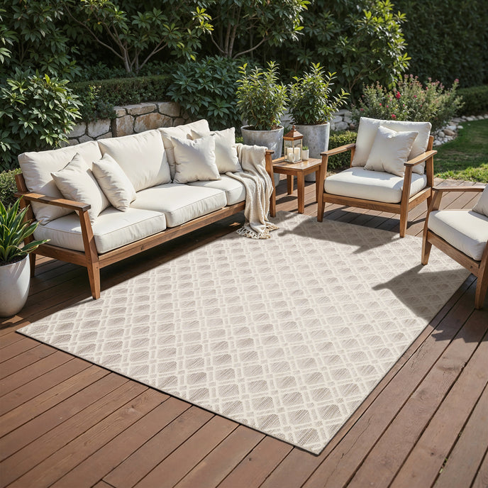 Cleaning/Installation: If spills occur, blot as much of the stain as possible with clean cloth or paper towel. Apply mild soap and water to a clean sponge to remove the remainder of the spill. Allow area to dry. To clean the entire surface of the indoor/outdoor rug, spray with a mixture of mild soap and water and rinse with garden hose. The use of a rug pad is recommended; initial creasing is normal, and these will generally fall out within a few days to a week; tightly reversing rolling the rug (pile side out) and leaving in warm area for several hours will aid in the removal of creases or lingering fold marks.